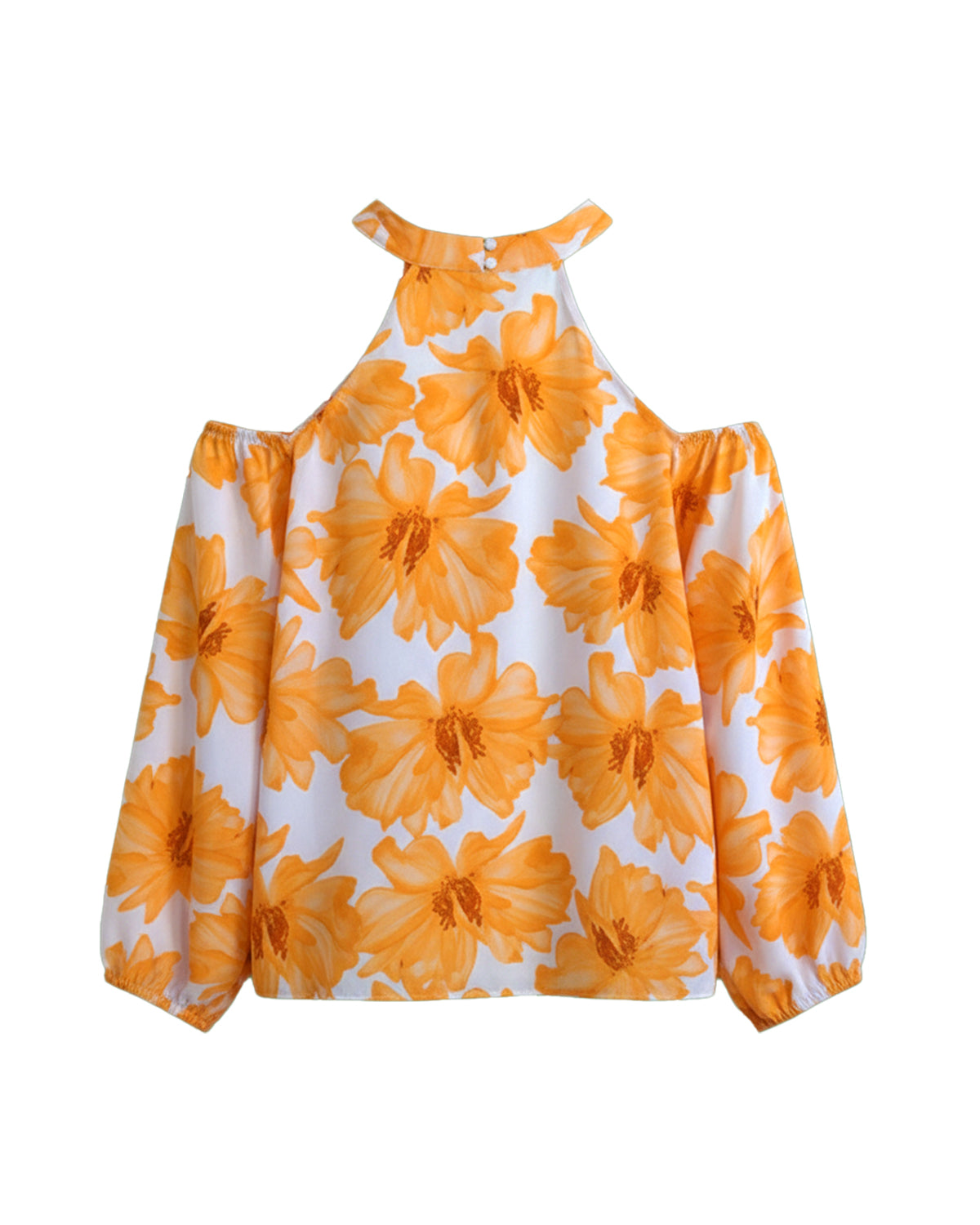 FLORAL HALTERNECK LONG-SLEEVE TOP