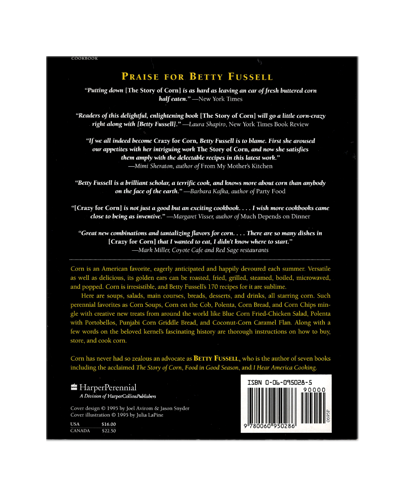 More Than 170 Recipes For America's Favorite Grain. Corn is an American favorite, eagerly anticipated and happily devoured each summer. Versatile as well as delicious, its golden ears can be roasted, fried, grilled, steamed, boiled, microwaved, and popped. Corn is irresistible, and Betty Fussell's 170 recipes for it are sublime. Corn has never had so zealous an advocate as Betty Fussell, who is the author of seven books including the acclaimed The Story of Corn, Food in Good Season, and I Hear America Cooking.